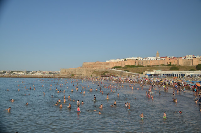 On this warm summer day, Rabat’s beaches were filled with people, though the swimmers were mostly men.