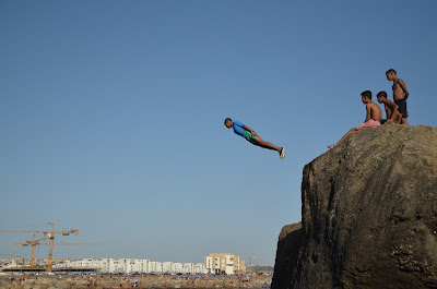 I took a series of photos of boys jumping from a towering rock into the sea below. They were having fantastic time.
