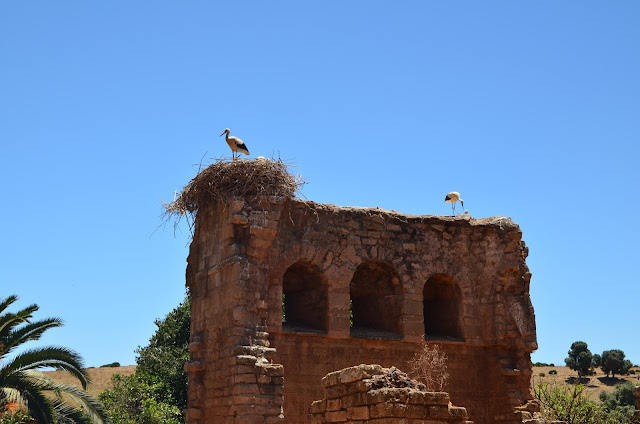 On the edge of modern Rabat is the Chellah, the heart of the ancient and medieval city. It lies a short distance upriver from the sea, and was once used as a raiding base for pirates. The Almohads later used it as a burial ground. Its current inhabitants are a large colony of storks, who have built their nests atop the ruins.