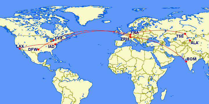 I’ve booked plane tickets, flying into Mumbai (formerly Bombay) in India and returning from Almaty in Kazakhstan. I have convenient long layovers in Toronto and Frankfurt, and will hopefully be able to see at least a little of those cities. Ironically, Canada isn’t on the list of countries I’ve visited.